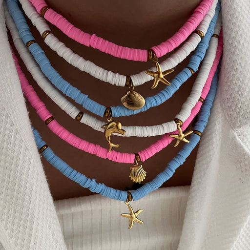 Original price USD$0.58 - Original price USD$0.58Original price USD$0.58USD$1.05USD$1.05 - USD$1.17Current price USD$1.05Wholesale Colorful shell dolphin necklace with a niche design, layered beach accessories