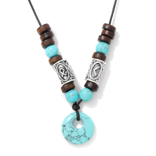 Wholesale Viking symbol necklace with stone pendant safety clasp and wooden beads