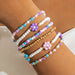 Wholesale Bohemian rice beaded multi-layer stacking elastic bracelet niche contrast color women' s bracelet set