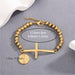 Wholesale Stainless steel round bead bead string bracelet with cross hanging tag