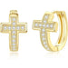 Wholesale Genuine gold brass electroplated personalized design with zircon cross earrings, high-end feeling earrings