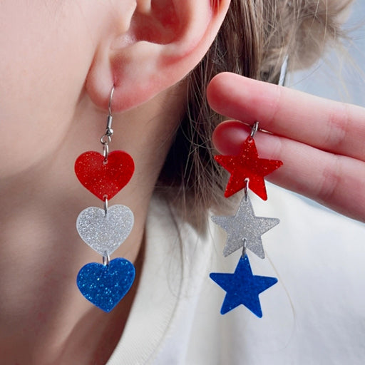 Original price USD$0.68 - Original price USD$0.68Original price USD$0.68USD$1.23USD$1.23 - USD$1.23Current price USD$1.23Wholesale Red, white, blue love acrylic earrings, long pentagram earrings, earrings accessories for women