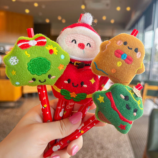 Wholesale Christmas Plush Cute Cartoon Push Ballpoint Pen