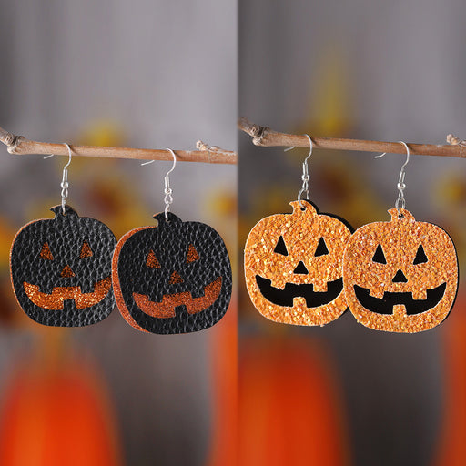 Original price USD$0.70 - Original price USD$0.70Original price USD$0.70USD$1.32USD$1.32 - USD$1.32Current price USD$1.32Wholesale New Goggy Pumpkin Sequins Pendant Earrings PU Leather Gothic Double Sided Earrings