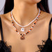 Wholesale Double-Layer Stacked Necklace Ghost Splicing Contrasting Color Rice Beads Collarbone Chain for Women