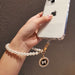 Wholesale Glass pearl bead mobile phone chain bow accessory pendant