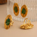 Wholesale Vintage exquisite high-end stainless steel oval earrings set with natural stone earrings and ring set
