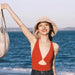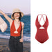 Wholesale Retro slim fit sexy neck hanging suspender beach one-piece swimsuit
