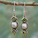 Wholesale Vintage Thai Silver Pearl Earrings Creative Square Diamond Olive Green Long Earrings
