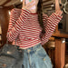 Wholesale Contrast color striped long-sleeved T-shirt women's casual slimming bottoming shirt short top