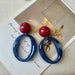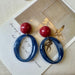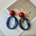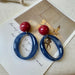 Wholesale Red and blue contrasting geometric ring earrings exude a literary and artistic atmosphere, with personalized and niche earrings for women