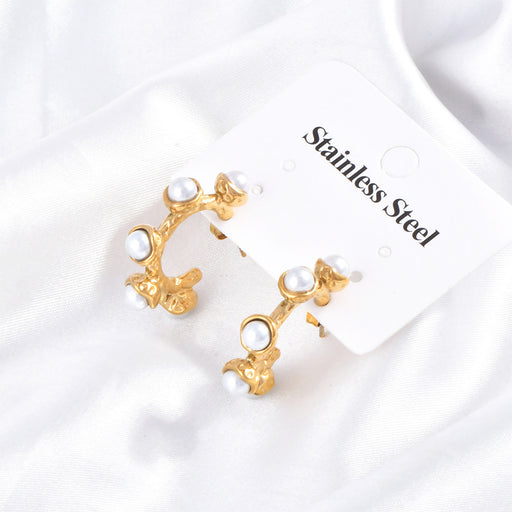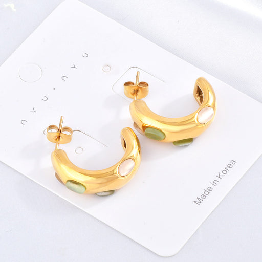 Original price USD$2.76 - Original price USD$2.76Original price USD$2.76USD$5.62USD$5.62 - USD$5.62Current price USD$5.62Wholesale Geometric titanium steel earrings, 18K gold stainless steel inlaid pearl C-shaped earrings.