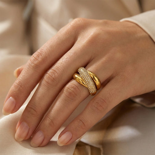 Original price USD$1.96 - Original price USD$1.96Original price USD$1.96USD$4.02USD$4.02 - USD$4.02Current price USD$4.02Wholesale Geometric Cross-Inlaid Zircon Exaggerated Stainless Steel 18K Gold Ring