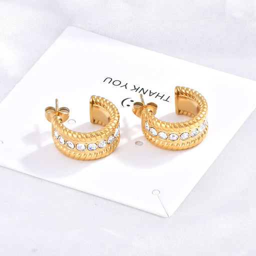 Original price USD$2.90 - Original price USD$2.90Original price USD$2.90USD$5.91USD$5.91 - USD$5.91Current price USD$5.91Wholesale Diamond twisted thread stainless steel geometric earrings C- shaped earrings for women