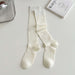 Wholesale Sweet pile socks, versatile calf socks, long tube cotton white elongated vertical striped socks