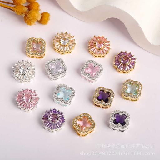 Original price USD$4.80 - Original price USD$9.10Original priceUSD$4.80 - USD$9.10USD$4.80 - USD$9.10Current price USD$4.80Wholesale 10pcs Micro inlaid zircon separated beads, four leaf clover round snowflake beads, porous scattered beads, DIY crystal bracelet string
