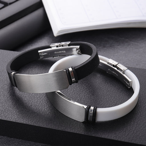 Original price USD$0.96 - Original price USD$1.07Original priceUSD$0.96 - USD$1.07USD$0.96 - USD$1.07Current price USD$0.96Wholesale Titanium steel personalized engraved sports basketball men's bracelet, silicone stainless steel couple bracelet
