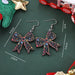 Wholesale Christmas Lantern Bow Pink Christmas Tree Pendant Earrings Wooden Double-sided Earrings Gift