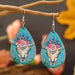 Wholesale Bull head sunflower water drop female model printing personality all-match long earrings trendy street shot wooden