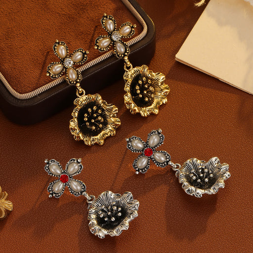 Original price USD$1.32 - Original price USD$1.39Original priceUSD$1.32USD$1.32 - USD$1.39Current price USD$1.32Wholesale Four leaf clover high-end sense niche retro earrings antique gold and silver earrings earrings