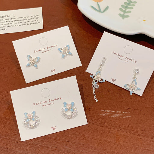 Original price USD$0.65 - Original price USD$1.61Original priceUSD$0.65 - USD$1.61USD$0.65 - USD$1.61Current price USD$0.65Wholesale Sweet and exquisite butterfly cherry blossom pearl earrings with silver needles, niche design, high-end and versatile earrings