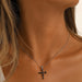 Wholesale Fashionable, trendy, personalized, versatile copper micro inlaid cross, water droplet inlaid diamond necklace accessory