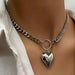 Wholesale New exquisite peach heart pendant necklace with simple metal thick chain heart-shaped collarbone necklace