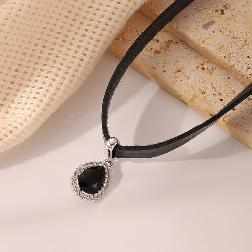 Original price USD$0.79 - Original price USD$0.79Original priceUSD$0.79USD$0.79 - USD$0.79Current price USD$0.79Wholesale Fashionable, versatile, personalized, simple, short, water droplet full diamond pendant, leather rope necklace accessory