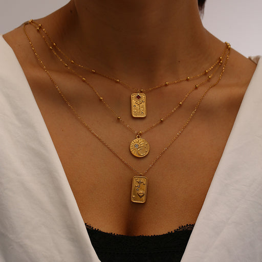 Original price USD$0.53 - Original price USD$1.17Original priceUSD$0.53 - USD$1.17USD$0.53 - USD$1.17Current price USD$0.53Wholesale New minimalist and fashionable diamond studded square brand sun decoration multi-layer necklace alloy collarbone chain for women