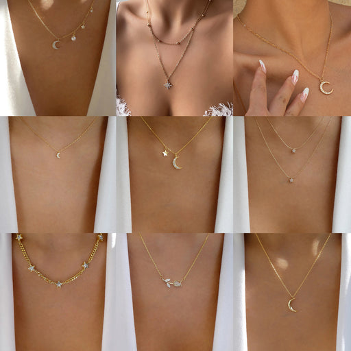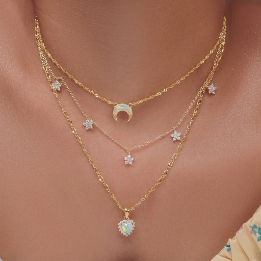 Original price USD$1.25 - Original price USD$1.25Original priceUSD$1.25USD$1.25 - USD$1.25Current price USD$1.25Wholesale Alloy New Product Jewelry Fashion Personality Love Moon Crystal Necklace Street Photography Multi layer Necklace