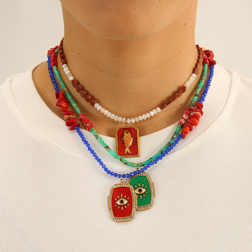Original price USD$6.86 - Original price USD$7.22Original priceUSD$6.86 - USD$7.22USD$6.86 - USD$7.22Current price USD$6.86Wholesale New Fashionable Natural Stone Devil's Eye Necklace Handmade Crushed Stone Bead Necklace Wholesale