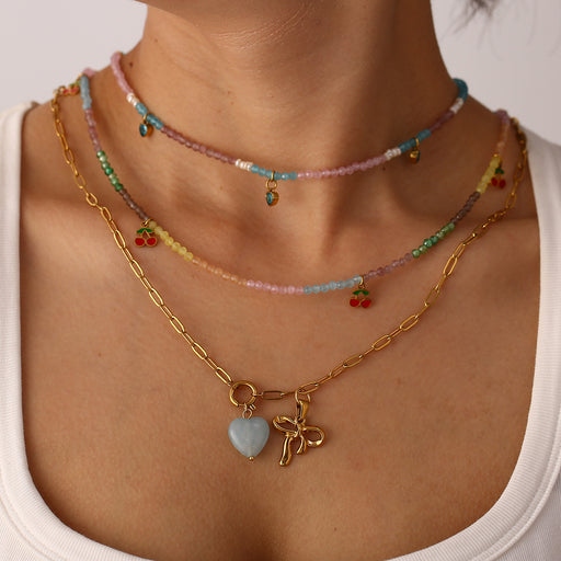 Original price USD$3.93 - Original price USD$7.05Original priceUSD$3.93USD$3.93 - USD$7.05Current price USD$3.93Wholesale Personalized stainless steel cherry necklace with bow pendant, natural stone heart necklace wholesale