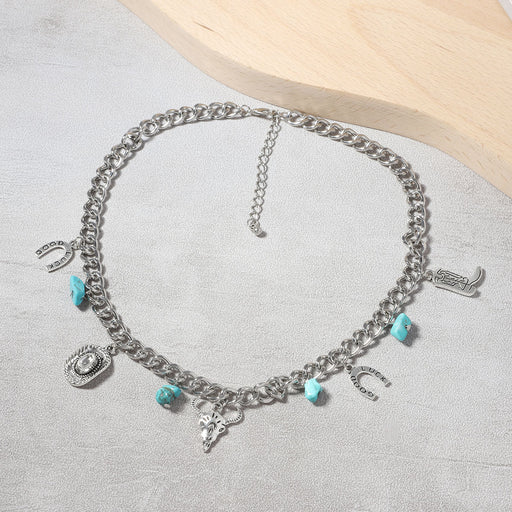 Original price USD$1.53 - Original price USD$1.80Original priceUSD$1.53 - USD$1.80USD$1.53 - USD$1.80Current price USD$1.53Wholesale western Denim retro ethnic style imitation turquoise alloy cow's head boots hat Necklace