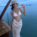 Wholesale Sexy neck tie and split bikini design with suspender and long skirt for vacation