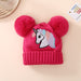 Wholesale Children' s Knit Hat for Autumn and Winter Embroidered Unicorn and Double Pom-Poms Warm Winter Hat
