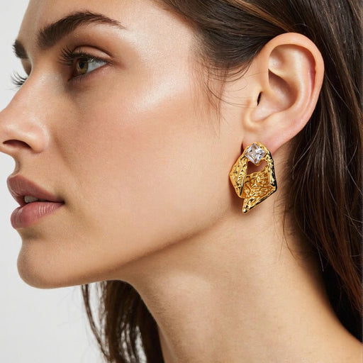 Original price USD$2.81 - Original price USD$3.96Original priceUSD$2.81 - USD$3.96USD$2.81 - USD$3.96Current price USD$2.81Wholesale Stainless Steel Earrings Asymmetrical Geometric Circle Earrings Workplace Accessible Luxury Pleated Semicircle Earrings with Diamonds