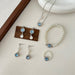 Wholesale Aquamarine Pearl Necklace Women's Silver Needle Earrings Necklace suit Combination