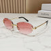 Wholesale Frameless cut sunglasses, fashionable oval frame glasses, gradient sunglasses