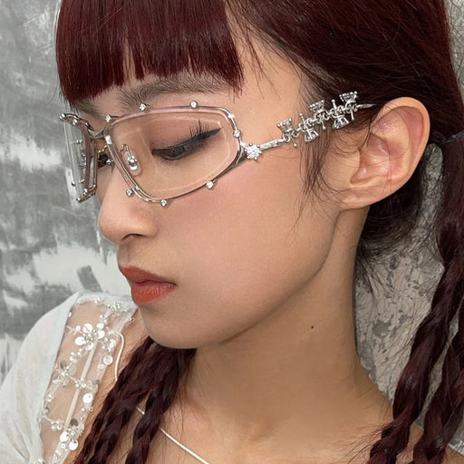 Original price USD$2.40 - Original price USD$2.40Original price USD$2.40USD$4.32 - USD$4.80USD$4.32 - USD$4.80Current price USD$4.32Wholesale Diamond studded glasses frame, fashionable with diamond shaped flat lens, large frame, personalized glasses frame