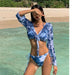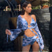 Wholesale Split tie dye swimsuit sexy long sleeved four piece bikini swimsuit
