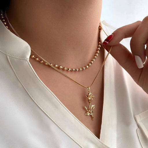 Original price USD$0.63 - Original price USD$0.63Original price USD$0.63USD$1.25USD$1.25 - USD$1.25Current price USD$1.25Wholesale Exaggerated jewelry, fashionable rose flower pendant, high-end feeling bead chain, two-layer necklace jewelry