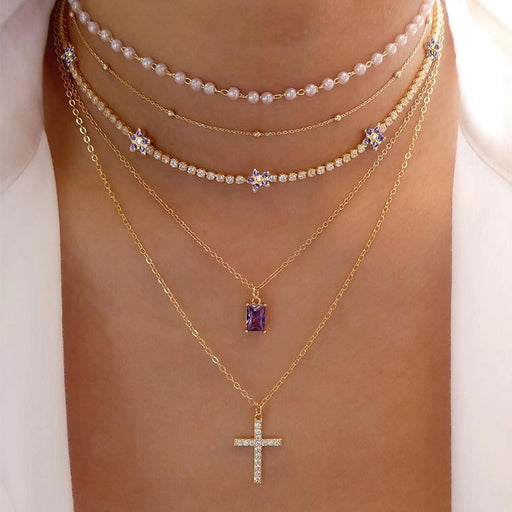 Original price USD$0.47 - Original price USD$0.47Original price USD$0.47USD$0.85USD$0.85 - USD$0.85Current price USD$0.85Wholesale Exaggerated jewelry, niche alloy chain pendant, simple cross, multi-layer necklace, women's collarbone chain wholesale