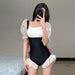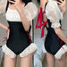 Wholesale Swimsuit with lotus leaf edge connected triangular mesh splicing design, with a niche feel