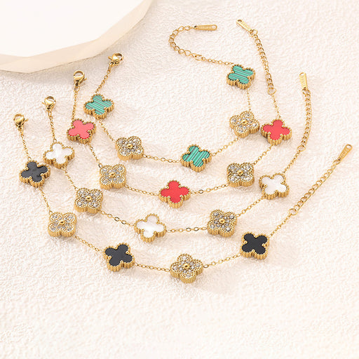 Original price USD$0.83 - Original price USD$0.97Original price USD$0.83USD$1.50 - USD$1.94USD$1.50 - USD$1.94Current price USD$1.50Wholesale Four leaf clover light luxury design double-sided five flower bracelet with diamond inlaid and flower titanium steel
