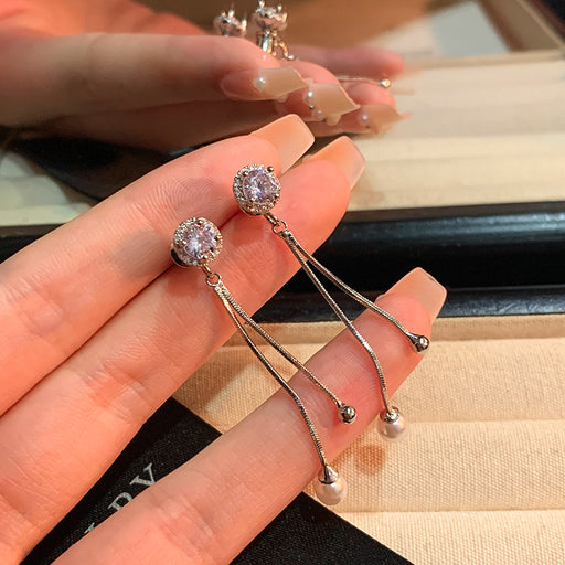 Original price USD$0.70 - Original price USD$0.70Original price USD$0.70USD$1.40USD$1.40 - USD$1.40Current price USD$1.40Wholesale Light luxury zircon tassel exquisite personalized pearl earrings