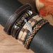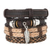 Wholesale New retro minimalist style feather alloy multi-layer leather pull-out 4-piece men's bracelet set