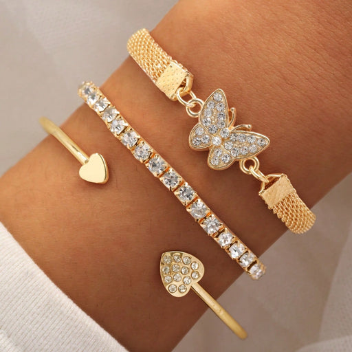 Original price USD$0.39 - Original price USD$0.39Original price USD$0.39USD$0.70USD$0.70 - USD$0.70Current price USD$0.70Wholesale Butterfly studded diamond bracelet, heart opening bracelet, creative and fashionable bracelet, women's accessory set