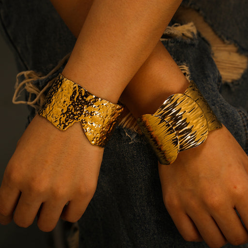 Original price USD$1.74 - Original price USD$1.74Original price USD$1.74USD$3.48USD$3.48 - USD$3.48Current price USD$3.48Wholesale Exaggerated jewelry, simple forged alloy bracelet, wide sided metal wind opening bracelet, hand accessory