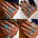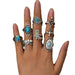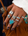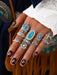 Wholesale Retro Bohemian turquoise cactus carved multi-piece suit ring