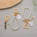 Wholesale Two tone flower alloy keychain pendant, cute letters, pearl accessories, headphone cover, bag, hanging decoration